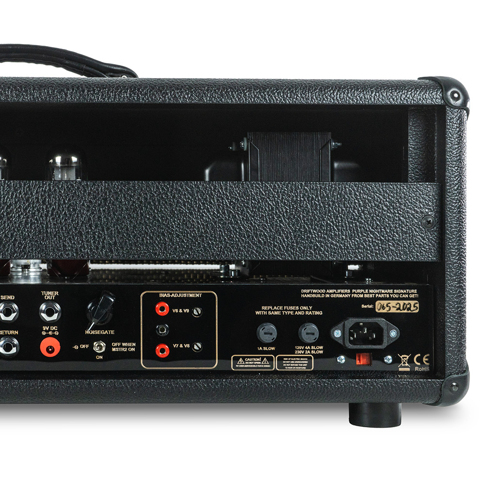 Experience the pinnacle of high-gain amplification with the Driftwood PurpleNightmare Signature. Redefining classic high-gain tone, this 100-watt all-tube beast offers two versatile channels—Clean and Burn—with dedicated controls for precision sculpting. The Burn channel features a 3-position bright switch and high/low gain settings for endless tonal flexibility. Powered by four EL34 tubes, it delivers raw power, clarity, and modern versatility for discerning guitarists. Compared to our legendary Pruple Nightmare the Signature offers a more bold midrange, less compression and a more loose low end.